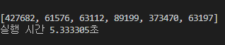 print('실행 시간: {0:.3f}초'.format(end - begin))